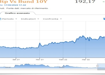 Spread Btp Bund/ Oggi 17 giugno 2022 diminuisce del 5,91% e si ferma a 192 punti