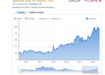Spread Btp Bund/ Oggi 30 maggio 2022 chiude a 193 punti