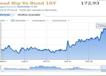 Spread Btp Bund/ Preoccupa lo spread sopra 172 punti oggi 25 aprile 2022