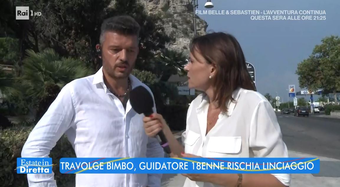 A Estate in Diretta la tragica vicenda dell’11enne morto a Terracina dopo essere stato investito sulle strisce pedonali da un’auto. Il piccolo era insieme alla mamma e alla zia quando una Volkswagen Polo di colore grigia guidata da un 18enne l’ha preso in pieno. Estate in Diretta ha intervistato Emanuele Panici, il titolare di un ristorante sito a pochi metri dal luogo dove è avvenuto l’incidente: “Non ho assistito subito all’incidente, ma sono uscito subito dopo – ha dichiarato ai microfoni di Rai Uno – ho chiamato il 118 che è arrivato dopo qualche minuto, abbiamo cercato di capire come fare per aiutare il bimbo ma mi han detto di non toccarlo”.