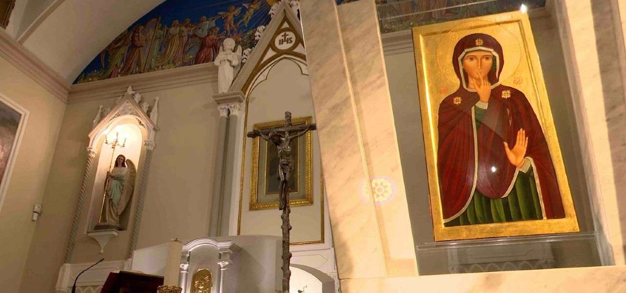 Proprio il silenzio è l’esperienza regalata dalla pandemia. Un dono ostico, faticoso eppure illuminante per la capacità di far nascere le parole o la Parola. L’icona, diventata meta ultima di pellegrini ansiosi di trovare conforto e consolazione, è stata “scritta” da una monaca benedettina dell’isola di San Giulio. L’ispirazione iconografica viene dal gesto catturato in un antico affresco copto trovato a Faras, nell’Alto Egitto, e custodito nel museo nazionale di Varsavia, ma l’altro punto di riferimento è l’evangelista Giovanni, che la chiesa bizantina fregia del titolo di “Teologo”, colui che invita al silenzio per entrare nel Mistero. Ed è proprio questo il compito del Santuario che sorge ad Avezzano: far vivere, in compagnia di Maria, lo spazio dove scoprire la “solitudine” essenziale a percepire il bisogno dell’Altro. Questo Santuario cittadino grazie a quella mano che invita a tacere, aprendo il cuore all’infinito, diventa il riflesso di quel “grande silenzio” in cui si muovono gli eremiti o i monaci.