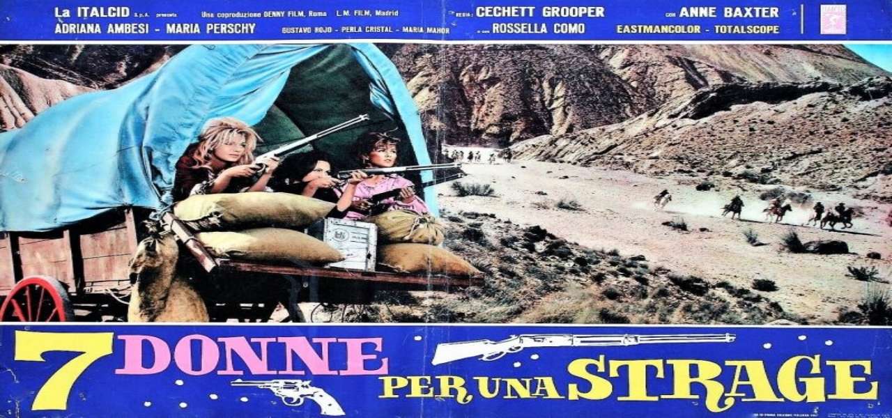 Il western 7 donne per una strage è ambientato ai confini con il Messico, la terra che tanto ha fatto le fortune di Django e compagni: sette donne sono le uniche sopravvisute all’attacco della carovana sulla quale viaggiavano, mosso dai guerrieri apache dei fratelli Popé e Nuvola Bianca. Spaventate, si muovono all’interno di un territorio dominato da indiani, spinte dal desiderio di raggiungere Fort Lafayette, la rappresentazione, per loro, della tanto anelata salvezza.