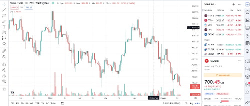 Quelle di Tesla che avevano già conosciuto una stagione florida, sono calate del 30%. Il crollo andava avanti dal 5 aprile scorso e il 22 aprile 2022 le azioni di Tesla Inc avevano raggiunto quota 1096 dollari. Adesso invece le azioni sono scambiate a 700 dollari ciascuna.