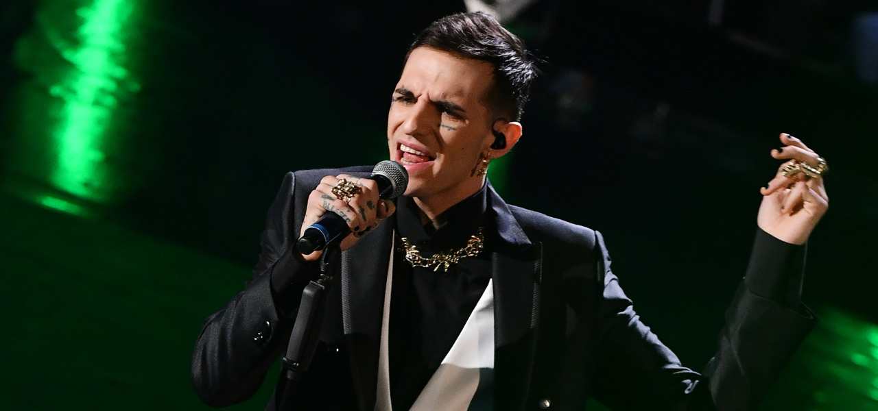 Achille Lauro indossava uno smoking rosso, un omaggio al film di Stanley Kubrick, Arancia meccanica, e durante l’esibizione ha regalato una performance sublime, intonando ad esempio l’inno alla femminilità e alla luna, leggasi Marilù, ma anche Bam Bam Twist, quindi Bella e la Bestia, brano molto importante per la sua carriera, per poi cantare con una rosa rossa in mano il verso “L’amore non è altro che una rosa”.