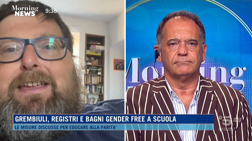 Mario Adinolfi commenta la scelta di introdurre i grembiuli gialli nelle scuole, ma anche i bagni gender free: le sue parole a Morning News