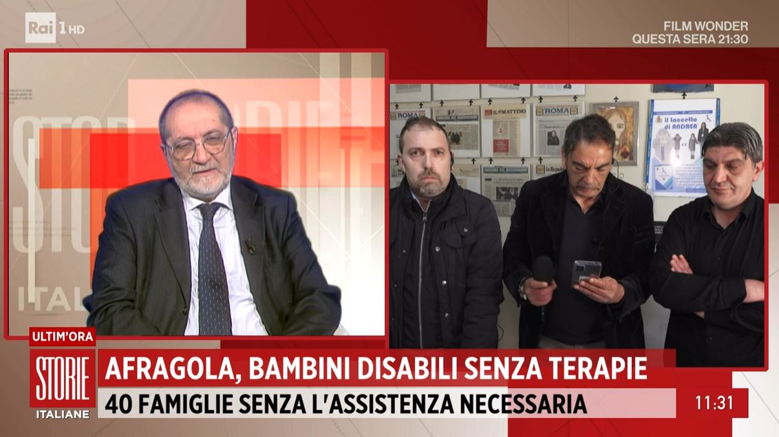 A Storie Italiane il caso del centro Aias Afragola, dove vi sono una serie di bambini disabili gravi senza terapie, per l’esattezza 40 bambini che da mesi non possono svolgere le giuste terapie. “Sono 70 giorni che il mio bimbo non fa terapie, sta regredendo in modo particolare e abbiamo bisogno di una mano”, ha raccontato visibilmente emozionato il padre di un piccolo paziente in diretta tv: “La terapia è vita per il bimbo e per la famiglia, chi non si trova in queste situazioni non può giudicare ne capire le esigenze. Io spero che tutto questo finisca presto in virtù di questa cosa e che i bambini tornino a fare terapia”.
