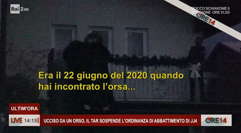Ore 14 è andata poi ad incontrare il ragazzo che era stato aggredito assieme al papà il 22 giugno del 2020, sempre dall’orsa JJ4: “Erano le 3 del pomeriggio, eravamo a 300 metri dalla strada principale, mica tanto lontano, eravamo tranquilli, stavamo passeggiando e ce la siamo trovata lì davanti. Ha reagito subito, è saltata fuori da una pianta già con l’intenzione di aggredirci. Eravamo in due e ci siamo salvati a vicenda, se non ci fosse stato solo mio papà non so come sarebbe finita…”.
