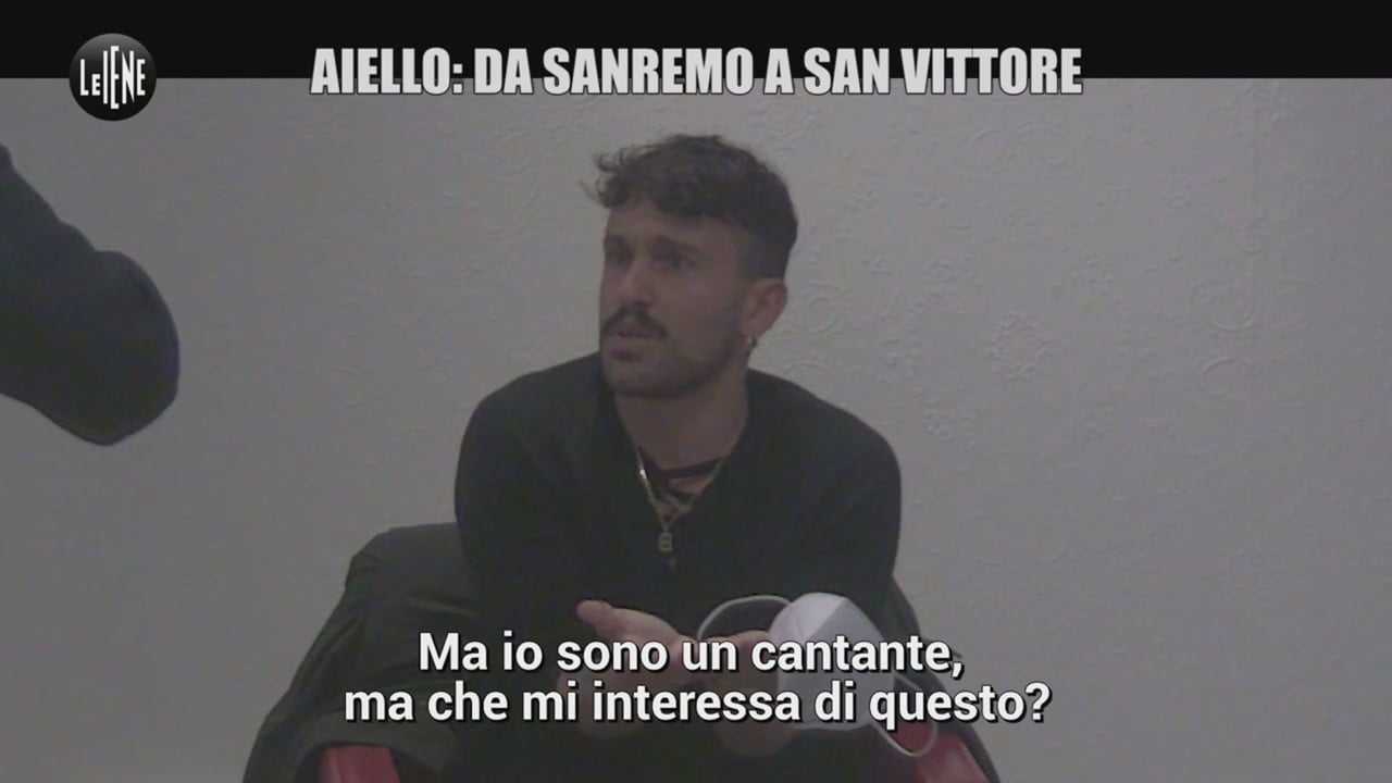 A quel punto Aiello chiede spiegazioni, ma il finto militare dell’arma inizia a rispondere in maniera assurda, con vari modi di dire come ad esempio “Il cavallo quando si avvicina al fiume, nitrisce”. Aiello viene quindi portato in una stanza e lasciato da solo in compagnia di un altro attore de Le Iene, il finto narcos del gruppo, che continua a ripetergli “Minimo dieci anni”, riferendosi agli anni di galera della probabile condanna per spaccio. Arriva anche l’avvocato del cantante, che gli conferma la possibile pena, quindi le manette… e l’intervento de Le Iene per porre fine allo scherzo. Qui il video