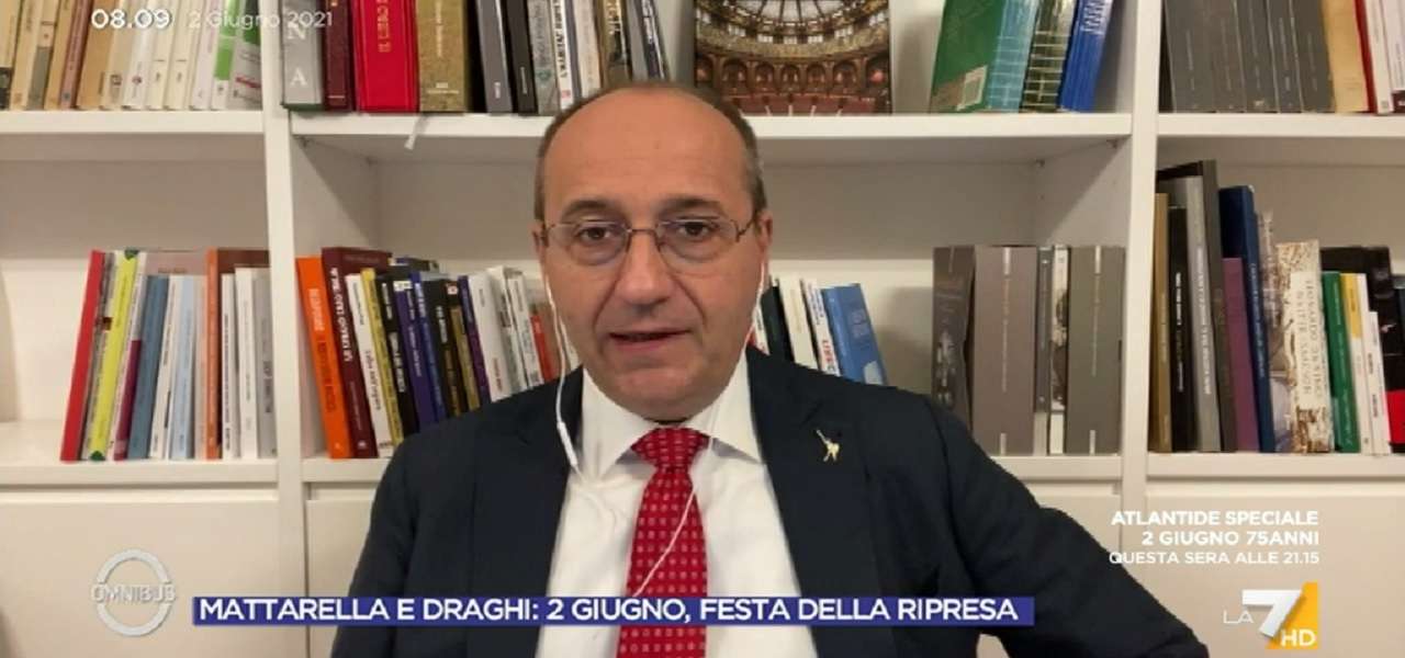 L'economista della Lega Alberto Bagnai a Omnibus: "Il punto di sintesi sul blocco dei licenziamenti lo troverà Mario Draghi"