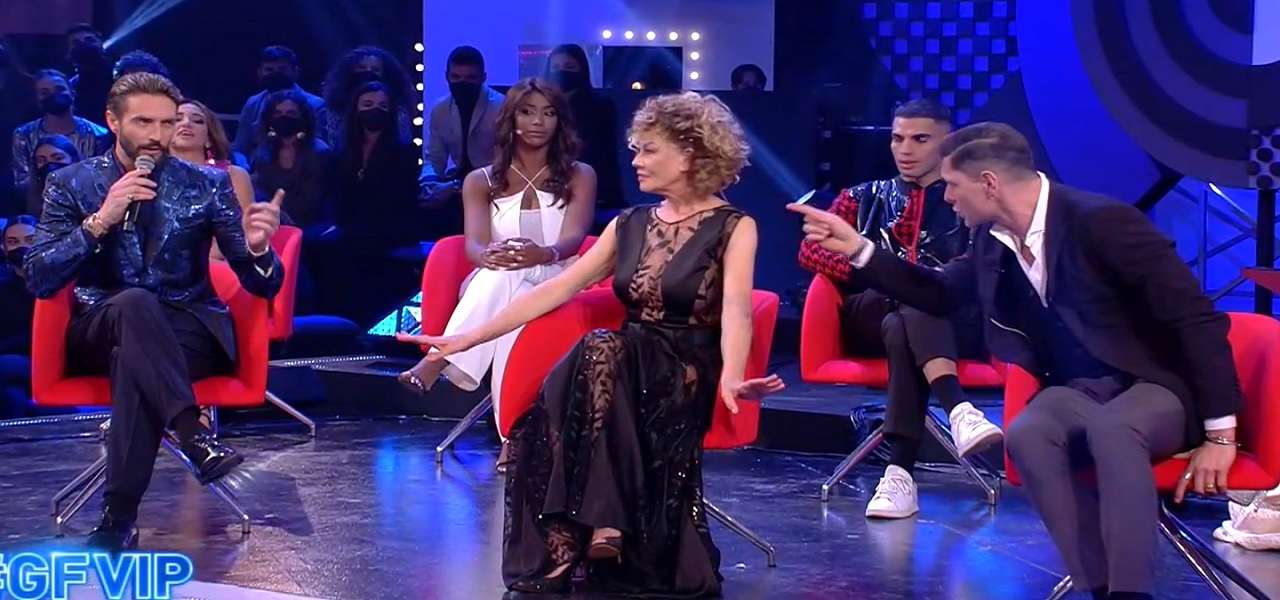“Ma è vero che vi stavate picchiando?”, ha allora chiesto Signorini. “No no, siamo contro la violenza, però io spero che un calcio nel sedere glielo dia la moglie!” ha replicato pungente. Pochi minuti dopo, Alex ha però fatto il suo ritorno in studio. Signorini non si è lasciato sfuggire il momento, chiedendo a Belli la sua versione dei fatti. Lui ha replicato: “Una diatriba atavica con Aldo che mi provoca e, di conseguenza, io rispondo.” Aldo, però, lo ha interrotto immediatamente, dicendo che è stato lui a provocarlo: “Fai tutto tu, tu apri e chiudi!” Così lo ha accusato: “sei un uomo piccolo così! Mi hai messo un dito in faccia! Sei ridicolo!”