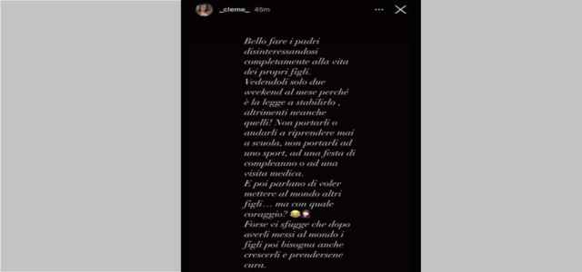 Di fronte al desiderio di Alessandro Basciano e della fidanzata Sophie Codegoni di allargare la famiglia, Clementina Deriu, l’ex compagna di lui e madre del figlio Nicolò, sul proprio profilo Instagram, si è lasciata andare ad un amaro sfogo. “Bello fare i padri disinteressandosi completamente della vita dei propri figli. Vedendoli solo due weekend al mese perché è la legge a stabilirlo, altrimenti neanche quelli! Non portarli o andarli a riprendere a scuola, non portarli ad uno sport, ad una festa di compleanno o ad una visita medica”, ha scritto.