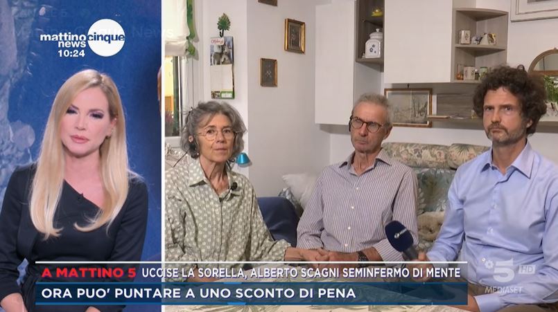 Il terribile caso di Alice Scagni oggi a Mattino Cinque, programma in diretta su Canale 5. I genitori della povera donna uccisa dal fratello Alberto sono stati intervistati in esclusiva dal talk condotto da Federica Panicucci. “Il Gip dice che Alberto era seminfermo di mente? – dice Antonella Zarri, mamma di Alice Scagni – questa perizia verrà discussa il 3 novembre insieme agli altri periti. Dopo sei mesi noi vediamo quello che abbiamo sempre detto, Alberto non aveva accortezza dei suoi atti ed era una persona pericolosa, quello che abbiamo detto al 112. Quella famosa telefonata (in cui i genitori di Alice Scagni chiedono l’intervento delle forze dell’ordine ndr) deve ascoltarla ancora tutta l’Italia visto che il Procuratore non ritiene di farla ascoltare, e ripeto, sei mesi fa noi dicevamo quello che ha detto oggi il perito. Noi chiediamo di essere considerati parte offese e direi che siamo abbastanza offesi”.