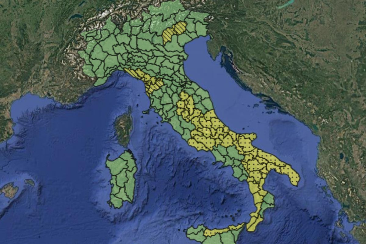 Spostandoci verso il centro, poi, troviamo da subito – sempre nel bollettino dell’allerta meteo – la totalità dell’Umbria, dell’Abruzzo, del Molise e della Puglia, buona parte delle Marche e alcune aree meridionali del Lazio il rischio temporalesco; mentre tra Calabria e Sicilia a essere interessato dall’allerta meteo saranno soprattutto i rispettivi versanti tirrenici, con rischi contemporaneamente temporaleschi e idrogeologici.