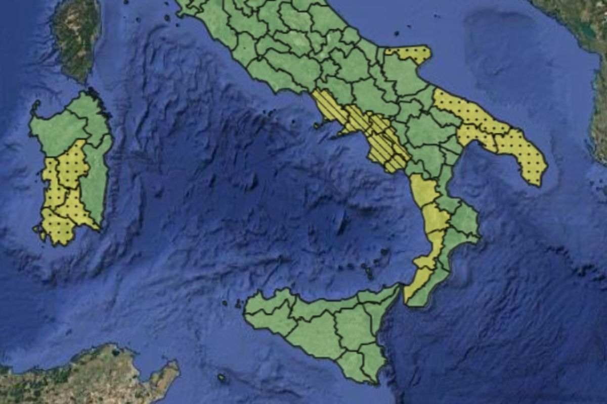 Senza guardare troppo avanti nel tempo, vale le pena soffermarci su quello che sappiamo fino a questo momento, dicendovi che oggi l’allerta meteo – lo ripetiamo, di colore giallo – interesserà un totale di quattro regioni: si tratta in particolare dell’intero versante tirrenico della Calabria, dell’area napoletana e del Cilento della Campania, delle due punte estreme – quella a Nord e quella a Sud – della Puglia e del versante a Sud-Ovest della Sardegna.
