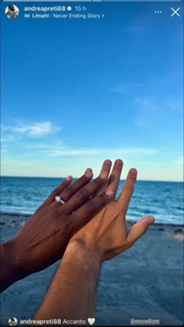 Andrea Preti e Venus Williams si preparano a diventare marito e moglie: il matrimonio è ufficializzato con una foto molto speciale