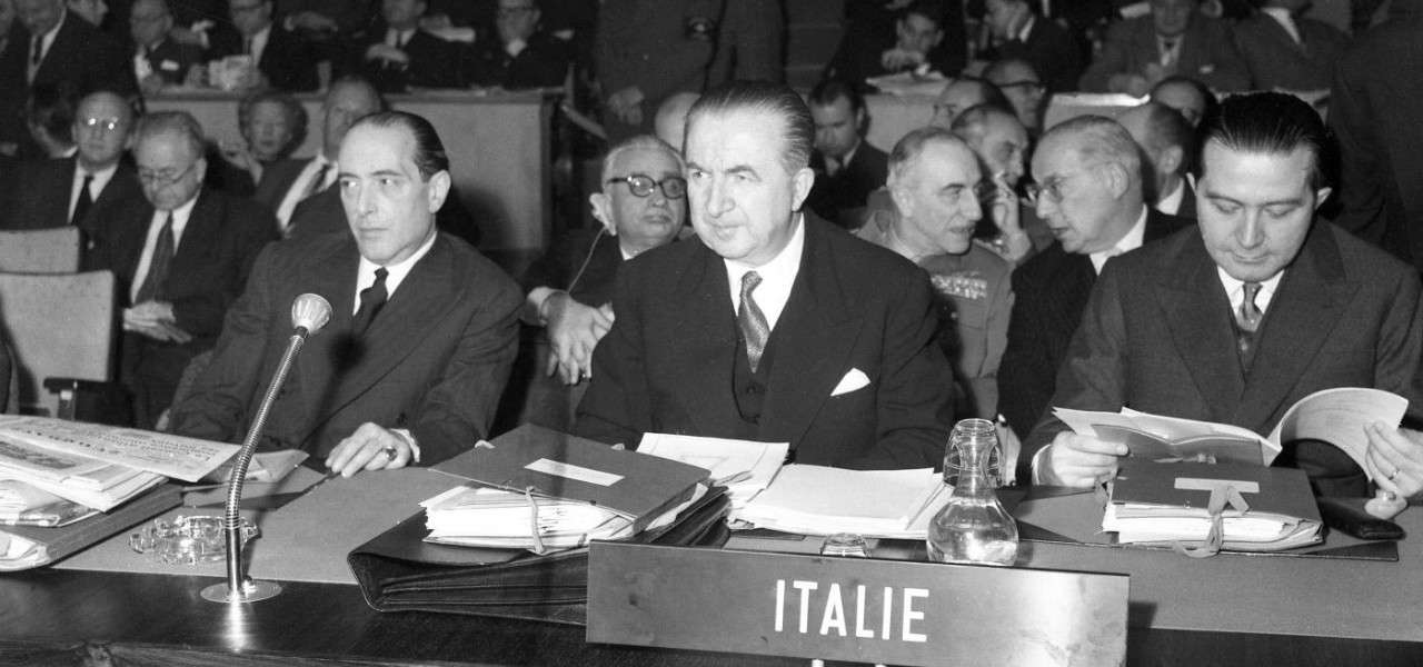 L’Italia è in guerra, occupata dai nazifascisti al nord e dagli angloamericani al centro-sud e Roma è stata appena liberata. Un giovane romano, laureato in giurisprudenza, già da alcuni anni presidente della Fuci, inizia a dedicarsi alla politica attiva all’ombra di un vecchio politico popolare che ha preso la leadership della neonata Democrazia Cristiana. È stato raccontato molte volte l’incontro tra Alcide De Gasperi e Giulio Andreotti, in una sala della Biblioteca Vaticana, dove il primo lavorava, dopo essere stato accolto per proteggerlo dalle angherie fasciste, e il secondo studiava per preparare la tesi. Un incontro risalente al 1940, un po’ rude per la verità, sulle note contrastanti di un “non ha studi più seri e più utili cui dedicarsi” (nello specifico era un libro sulla marineria pontificia) e la risposta piccata, “ho bisogno di questo libro”, con il mal celato pensiero “ma di che s’impiccia”?