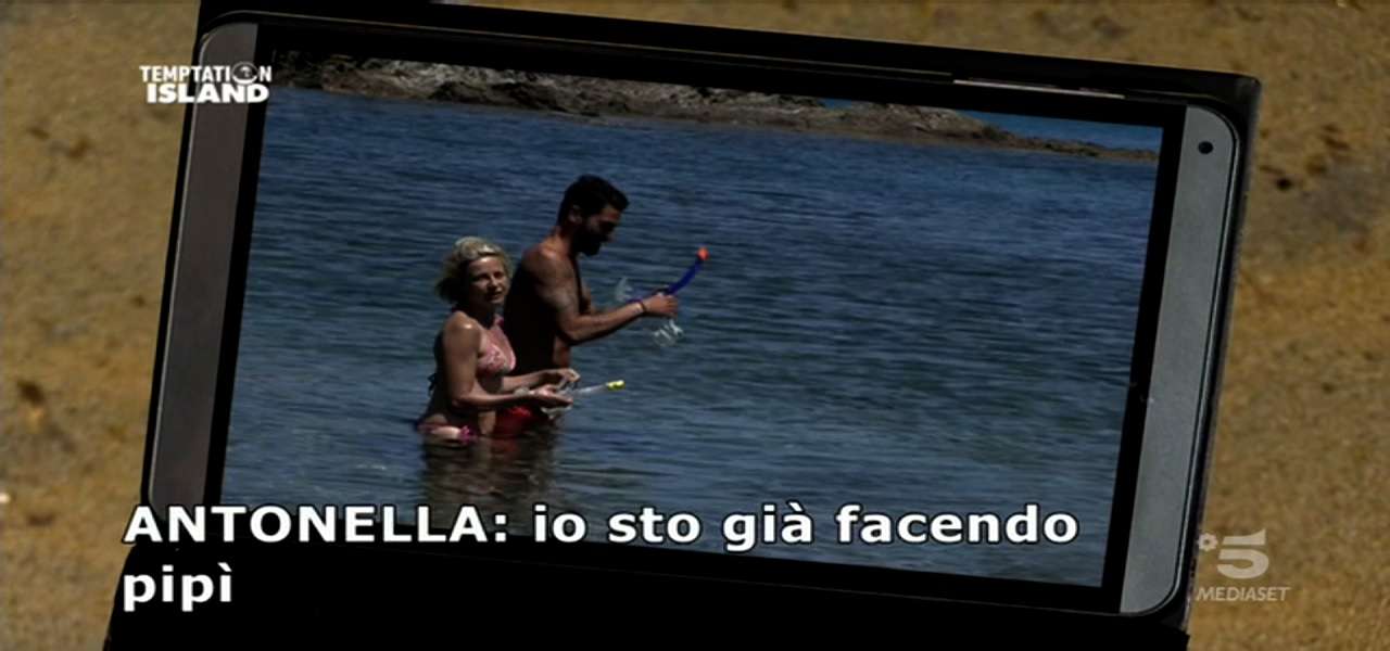 Finito qui? No, anzi. Dopo aver fatto pipì in mare, Antonella Elia confessa di provare grande godimento e che questo è per lei “Uno dei piaceri più grandi”, sottolineando che è dunque qualcosa che fa abitualmente. E infatti ribadisce “Che bello fare pipì in acqua!” Nel vedere questo video, Pietro Delle Piane è sbalordito ma ci ride sù. Si infuria, però, quando la sua fidanzata torna a parlare del suo ex, Fabiano, confessando di sentirlo di nascosto anche se lui non vuole e parlando di quello che è il loro forte rapporto ancora oggi, anni dopo il loro addio.