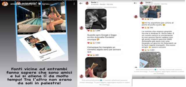 Amedeo Venza, tra le storie del proprio profilo Instagram, ha prima pubblicato un post facendo notare la presenza di Antonella Fiordelisi e Andrea Graffagnini nella stessa palestra di Milano e, poi, ha puntualizzato: “Fonti vicine ad entrambi fanno sapere che sono amici e lui si allena lì da molto tempo. Tra l’altro non erano da soli in palestra“. Alessandro Rosica ha aggiunto che la Fiordelisi è single: “Antonella è single, quindi qualora ci fosse qualcosa non c’è motivo di screditarla”.
