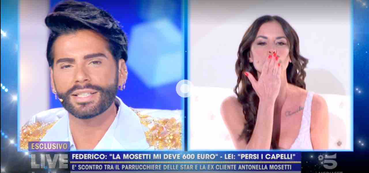 Antonella Mosetti vs Federico Fashion Style a Live Non è la D’Urso per la questione extension. La ex Non è la Rai è furente contro il parrucchiere delle vip: “non sono l’unica nello spettacolo, sono tantissime le persone che ti hanno esposto dei problemi, sei tu che dovresti pagare quelle come noi che ti fanno pubblicità”. Federico però replica: “ho il doppio dei tuoi follower e hai detto che faccio delle trasmissioni televisive pagandole. Ma che problema hai?”. Ma non finisce qui, visto che il parrucchiere torna sulla questione di un mancato pagamento di circa 600 euro che la Mosetti non avrebbe pagato, ma la showgirl non ci sta: “io ti mangio! Ti ho pagato in nero, dici solo stronzate, fai venire il sangue alle tempie”. Poi si torna a parlare dei prezzi folli del salone del parrucchiere con la storia di una donna che ha dovuto pagare quasi 6000 euro. La Mosetti dopo il video commenta: “ma nemmeno se andavi 20 anni fa da Coppola cifre del genere non si sono mai sentite nella vita”, ma la ex concorrente del Grande Fratello Vip si ritrova improvvisamente protagonista di una busta choc.
