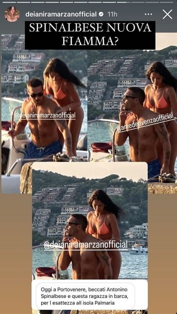 Insieme all’ex gieffino c’è una ragazza misteriosa, molto bella, che sembra gli stia facendo un massaggio alle spalle. Dalle foto insomma traspare una certa intimità, che sembra dunque confermare che tra i due ci sia del tenero. Non è chiaro chi sia la ragazza avvistata con lui in barca a Portovenere; potrebbe tuttavia trattarsi di Anita, una donna toscana che nel 2014 ha vinto il titolo di Miss Garda e che è stata avvistata con Antonino alcuni giorni fa.