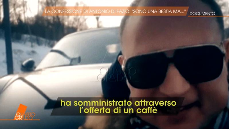 Fra i tanti temi trattati da Quarto Grado anche quello riguardante Antonio Di Fazio, l’imprenditore di Milano arrestato con l’accusa di aver drogato delle donne per poi fotografarle. Il programma di Rete Quattro ha mandato in onda la confessione dello stesso manager agli inquirenti: “Sono io quella bestia che cercavate e che ha fatto questa cosa. Come le ho somministrate? Abbiamo bevuto e al secondo giro, abbiamo riso e scherzato, poi la ragazza si è avvicinata a me ed ho capito che aveva una volontà di sfiorarmi, e allora io per sciogliermi maggiormente io e lei, ho sciolto queste benzodiazepine nella bevanda ma non in misura pesante”.