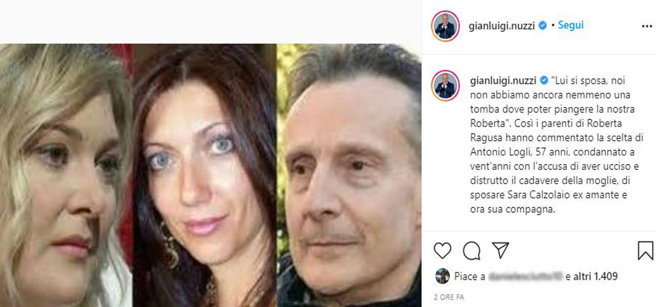 La notizia del futuro matrimonio di Antonio Logli e della sua ex amante Sara Calzolaio troverebbe conferma anche tra amici comuni della coppia e si parla – scrive TgCom24 – anche di un di un percorso pre-matrimoniale già intrapreso da Antonio e Sara. Tuttavia, per convolare a nozze con una cerimonia religiosa, bisognerà aspettare che Antonio Logli torni in libertà. Sul piano civile la questione cambia dal momento che il tribunale di Pisa ha disposto la rettifica dello stato di Roberta Ragusa, dichiarandola formalmente morta permettendo così a Logli di avere una nuova moglie. Il caso è destinato a far discutere. Una delle cugine di Roberta Ragusa ha commentato a La Nazione: “Fa male, fa malissimo, Roberta non si meritava tutto questo, lui si sposa, noi non sappiamo nemmeno dove andare a piangerla”. Ed a dire la sua attraverso la pagina Instagram è stato anche Gianluigi Nuzzi che ha commentato: “Ho una profonda pena per i figli di Roberta Ragusa. Penso a loro. Penso a cosa voglia dire per un ragazzo stare senza mamma. Cosa voglia dire trovarsi il papà condannato definitivamente per averla ammazzata e trovare rifugio nelle braccia della sua amante”. Il giornalista e conduttore di Quarto Grado ha proseguito: “I due ragazzi sono convinti dell’innocenza del padre. E su questo non li giudico, non commento. Bisogna trovarsi in certe situazioni. Ma il matrimonio mi lascia basito, senza parole. Ripenso a certe interviste dove Antonio Logli diceva “Se Roberta tornasse….”. Ma per favore…”.