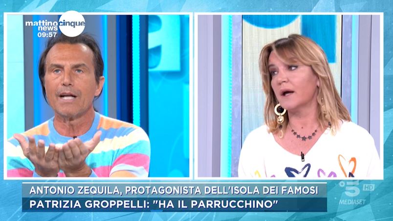 A Mattino5 il chiarimento tanto atteso fra Antonio Zequila e l’opinionista Patrizia Groppelli. Quest’ultima ha insinuato più volte nelle ultime settimane che l’ex isolano avesse il parrucchino, e oggi lo stesso ha voluto replicare a tali parole. “Io sono offesa con te come donna e come persona, come donna che fa anche chirurgia plastica”, ha esordito la Groppelli, e subito Zequila ha replicato: “Inizi di prima mattina a dire delle sciocchezze, stai dicendo che ho il parrucchino, questi sono i miei capelli, naturali”. Ma ancora la Groppelli: “Non c’è niente di male ad avere il parrucchino, hai quattro peli, sono pochi, non c’è niente di male ad avere un parrucchino, insulti le persone che hanno il parrucchino”.