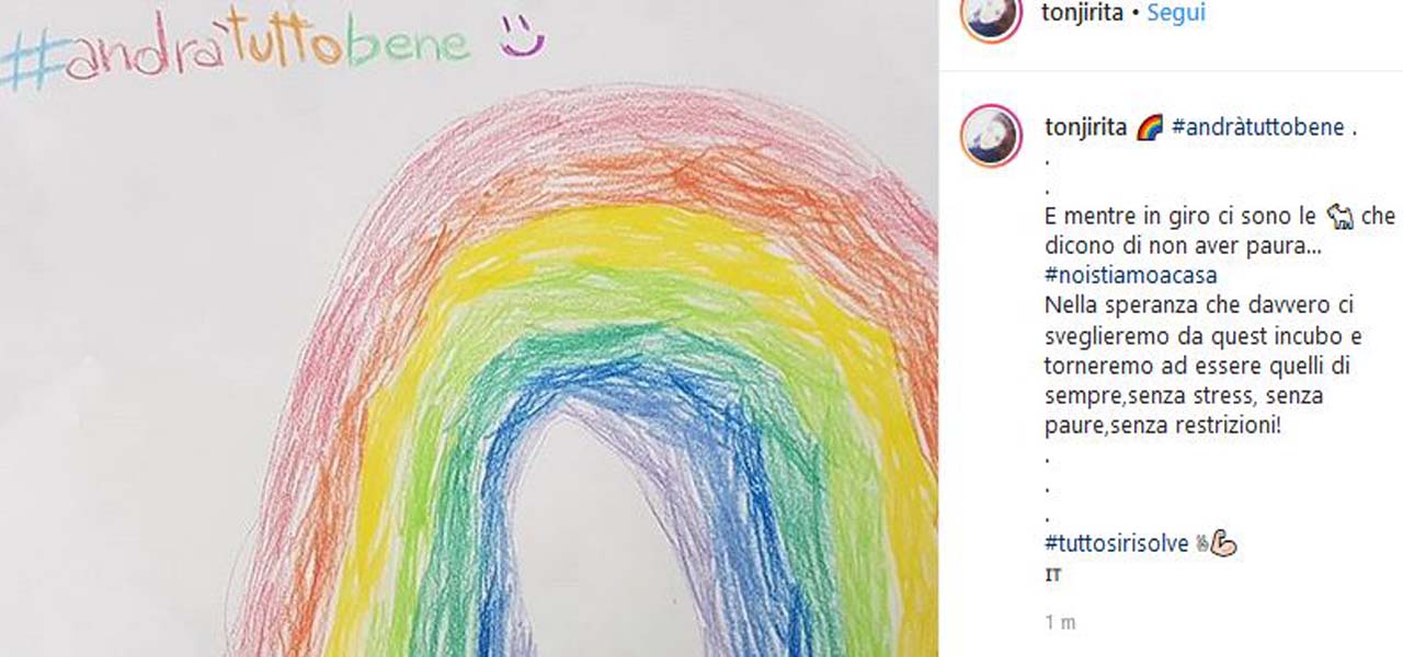 Le mamme che hanno aderito all’iniziativa contro la paura da Coronavirus hanno spiegato: “Sul nostro balcone c’è un arcobaleno di speranza. L’auspicio per l’Italia che #andràtuttobene. Abbiamo bisogno di pensieri positivi”. E pensieri positivi arrivano anche dai balconi e dai portoni di molte abitazioni del Nord, come Milano, Lodi, Cremona e Varese, così come del Sud (oltre a Bari anche Palermo). I bimbi di tutta Italia si sono uniti al coro di un hashtag pregno di speranza: “#andràtuttobene”. Così, con un arcobaleno e tanti colori, hanno lanciato un messaggio di solidarietà al nostro Paese in uno dei momenti più difficili degli ultimi decenni. Un messaggio di positività ma anche di voglia di non arrendersi e di lotta, ma anche una iniziativa per trascorrere del tempo insieme ai più piccoli costretti a restare a casa a causa delle scuole chiuse. In queste ore i social sono letteralmente invasi da post con arcobaleni e colori, accompagnati da messaggi di speranza che in questo momento particolarmente delicato scaldano il cuore come non mai.