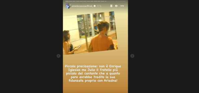 Inizialmente, si pensava che il cantante sorpreso insieme ad Ariadna fosse Enrique Iglesias, ma Amedeo Venza, attraverso una storia pubblicata sul proprio profilo Instagram, ha scritto: “È Julio, il fratello più piccolo del cantante che, a quanto pare, avrebbe tradito la fidanzata proprio con Ariadna”.