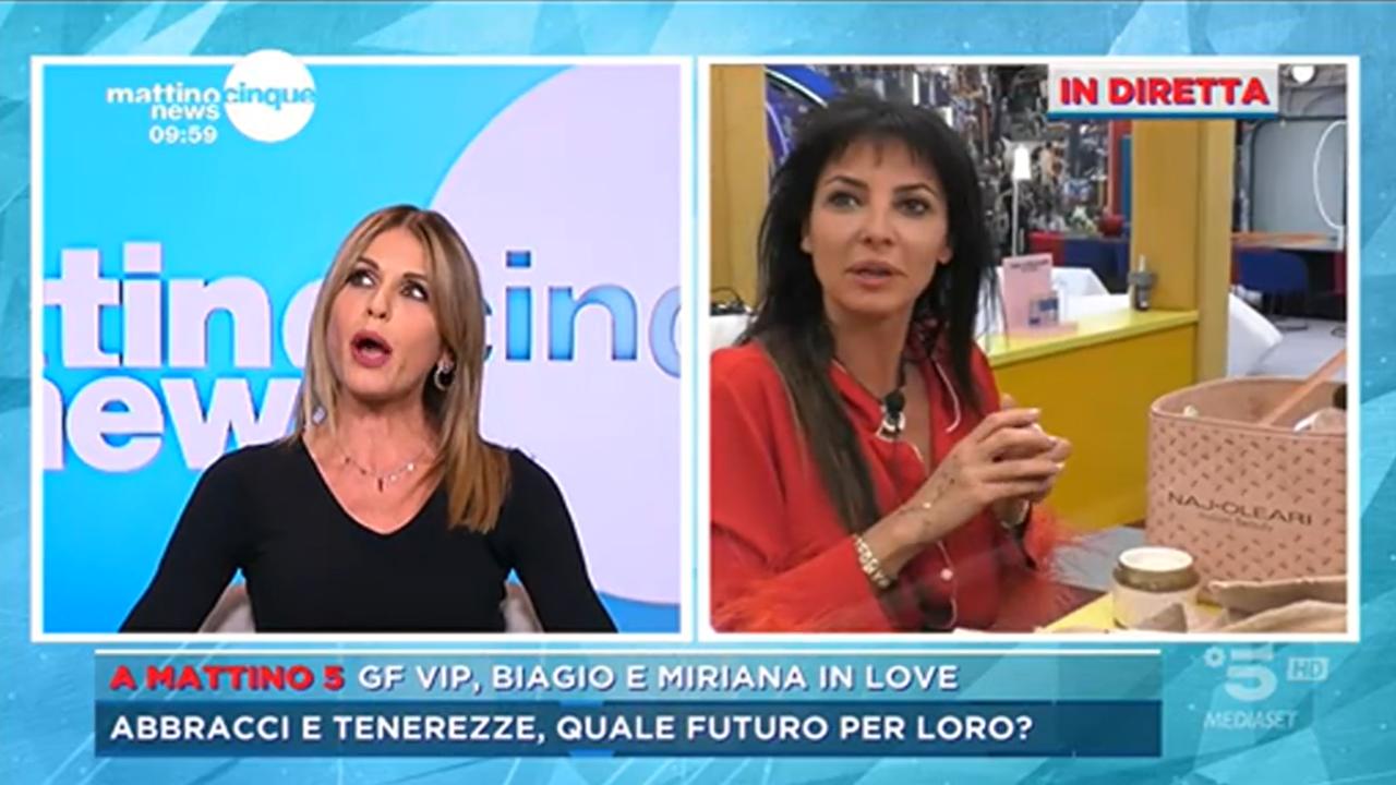 Quindi Federica Panicucci l’ha incalzata ancor di più sulla storia d’amore fra i due, e l’ex Miss Italia ha ribadito il suo pensiero già esternato nelle scorse puntate di Mattino 5: “No io non credo in questa storia d’amore, è vera come i soldi del Monopoli, chi conosce Biagio lo sa, ti spiego anche perchè: allora tu non puoi per un mese e mezzo parlare male e picchiare duro su Miriana che non conosci, quindi già lì mi è puzzata la cosa. come entri in casa, casualmente la prima persona in cui si mette nel letto è Miriana, ma.. hai parlato male un mese e mezzo di lei? Ok. Poi scoppia questo amore quando io”.