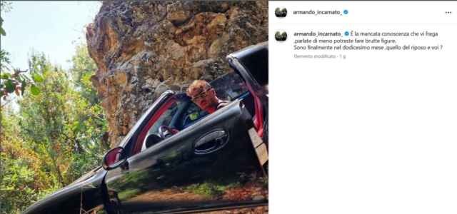 “É la mancata conoscenza che vi frega ,parlate di meno potreste fare brutte figure. Sono finalmente nel dodicesimo mese ,quello del riposo e voi?”, scrive Armando lanciando anche una frecciatina a chi lo accusa di essere sempre in vacanza. Sotto un post successivo, poi, ha scritto: “Quando capirò il vostro problema cambierò stile di vita. In poche parole mai”.