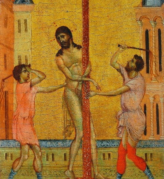 Ma cosa racconta a noi uomini del XXI secolo questa icona dai tratti certo un poco sbiaditi e ancora bisognosa di restauro? Di fronte a questo Cristo innocente ci rendiamo innanzitutto conto della modernità di Cimabue (1240-1302), che come un grande regista neorealista (altro che bizantino!) ha saputo evocare con il suo pennello la marea montante e vociante di uomini che si stringono intorno al condannato. Sono figure sciolte, profili di grande impatto emotivo. Così Cimabue, prima di Giotto, inizia a rinnovare la storia della pittura occidentale, volgendone il linguaggio da bizantino a latino, da ieratico a naturalistico, da ideale a reale. La cifra della realtà e del sentimento animano la piccola folla che deride Gesù. L’atmosfera, più che drammatica, è triste, di una tristezza che stringe il cuore.