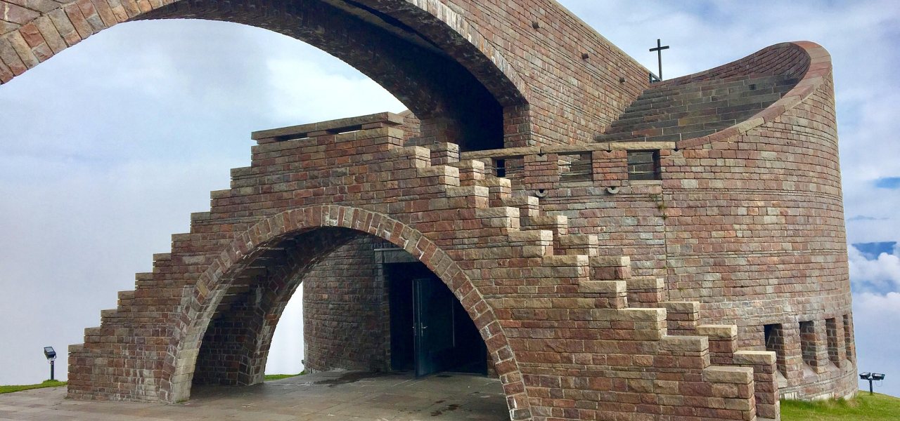 Ѐ una delle più pregevoli opere di architettura sacra ideate da Mario Botta, realizzata negli anni tra il 1990 e il 1996. Di forte impatto è il luogo stesso in cui sorge, con il suo terrazzo-belvedere che spalanca al panorama della catena alpina disposta a corona dei laghi. Ma è soprattutto l’interno dell’edificio che colpisce, per la sobria essenzialità del suo farsi vibrante richiamo ai nudi contorni del Mistero che si rende presenza eloquente. Si fa accogliere nell’umile scrigno di pietra disegnato secondo le linee di un ordine ridotto alla più austera compostezza di timbro monastico.