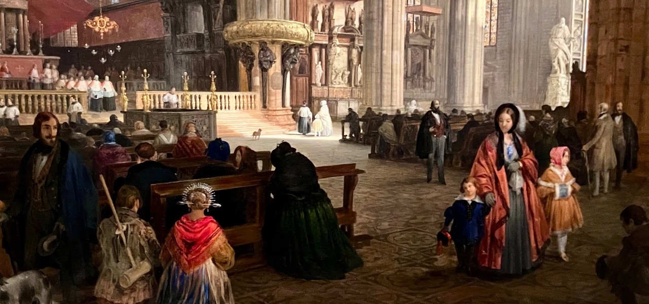 Angelo Inganni, "Interno del Duomo di Milano" (1844, particolare)