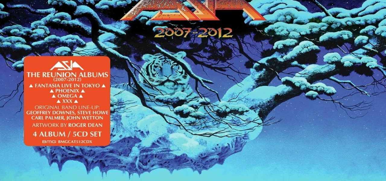 A seguito dell’incontro avvenuto nel 2006, furono pubblicati i progetti discografici ”Phoenix” nel 2008, ”Omega” nel 2010 e ”XXX” nel 2012, per poi rilasciare il doppio album live ”Fantasia, Live in Tokio” nel 2007. Quell’anno gli Asia lanciarono un tour mondiale che li fece esibire in Giappone, in Sudamerica, negli Stati Uniti ed in Europa e che fu interrotto a causa di problemi di salute di John Wetton. Quest’ultimo aveva espresso il legame con il gruppo con queste parole: ”Ci sentiamo tutti molto a nostro agio come persone e il suono riflettere la maturità collettiva di queste quattro persone che non erano solo desiderose di esplorare, ma che erano anche abbastanza rilassati da godersi la forza del materiale”. La nuova raccolta degli Asia (The Reunion Albums: 2007-2012) presenta la confezione disegnata dall’illustratore Roger Dean, che ha lavorato a numerose copertine del supergruppo sino al 2001, e che in questo caso ne ha creato una inedita basata sul design dello spettacolo dal vivo Fantasia.