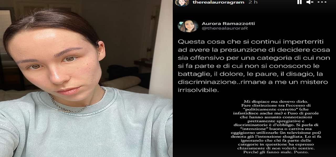 Aurora Ramazzotti commenta il monologo di Pio e Amedeo sulle parole che non si possono più usare ed esprime il proprio disappunto nei confronti di ciò che è stato detto dai comici pugliesi durante la terza ed ultima puntata di Felicissima sera. Aurora che ha seguito la puntata che ha avuto, tra i tanti ospiti, anche papà Eros Ramazzotti, con un messaggio pubblicato sui propri profili social, ha espresso la propria opinione sul monologo con cui Pio e Amedeo hanno spiegato che l’uso di parole froc*io e nerg*o sarebbe sbagliato quando si usano con l’intenzione di fare del male agli altri. “Non dobbiamo vergognarci di dire la parola ‘neg*o’ perché conta la cattiveria nella parola, conta l’intenzione. Nemmeno ricchione si può dire più, ma è sempre l’intenzione il problema. Così noi dobbiamo combattere l’ignorante e lo stolto. Se vi chiamano ricchioni, voi ridetegli in faccia perché la cattiveria non risiede nella lingua e nel mondo ma nel cervello: è l’intenzione“, ha detto Amedeo nel suo monologo.