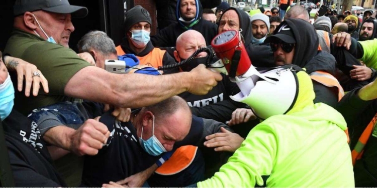 Lunedì, la filiale di Victoria del sindacato australiano Construction Forestry Mining and Energy Union (CFMEU) è stata vandalizzata, con i vetri della facciata dell’edificio distrutti durante gli scontri. Il CFMEU ha condannato “nei termini più forti possibili” l’attacco al suo ufficio di Melbourne, dove i membri si erano presentati a sostegno dell’obbligo introdotto dal governo, dicendo che la violenza è avvenuta dopo che la protesta è stata “infiltrata” da gruppi di destra. Alcuni dei membri del sindacato sono stati feriti durante gli scontri. “Il sindacato – si legge in una nota – continuerà a difendere i diritti dei suoi membri a lavorare in sicurezza in tutta l’Australia e non saremo intimiditi dal fare il nostro lavoro“. Una posizione collaborativa nei confronti del governo, politicamente molto diversa da quanto avviene in Italia, dove i sindacati si sono resi protagonisti di uno scontro a tratti molto duro nei confronti dell’esecutivo Draghi rispetto alla gestione della pandemia, in particolare sul capitolo Green pass.