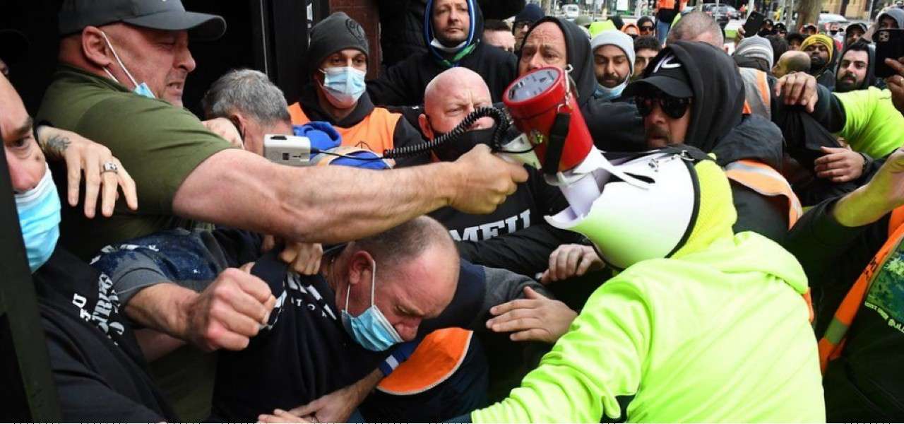 Lunedì, la filiale di Victoria del sindacato australiano Construction Forestry Mining and Energy Union (CFMEU) è stata vandalizzata, con i vetri della facciata dell’edificio distrutti durante gli scontri. Il CFMEU ha condannato “nei termini più forti possibili” l’attacco al suo ufficio di Melbourne, dove i membri si erano presentati a sostegno dell’obbligo introdotto dal governo, dicendo che la violenza è avvenuta dopo che la protesta è stata “infiltrata” da gruppi di destra. Alcuni dei membri del sindacato sono stati feriti durante gli scontri. “Il sindacato – si legge in una nota – continuerà a difendere i diritti dei suoi membri a lavorare in sicurezza in tutta l’Australia e non saremo intimiditi dal fare il nostro lavoro“. Una posizione collaborativa nei confronti del governo, politicamente molto diversa da quanto avviene in Italia, dove i sindacati si sono resi protagonisti di uno scontro a tratti molto duro nei confronti dell’esecutivo Draghi rispetto alla gestione della pandemia, in particolare sul capitolo Green pass.