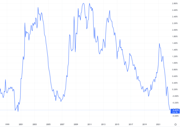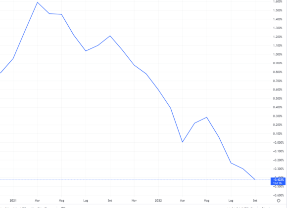 E ci dobbiamo stupire se, tornando all’economia, si continua a mentire dicendo che non c’è la recessione? Continuano a dirlo, nonostante il Pil americano in discesa per due trimestri consecutivi. Continuano a dirlo, nonostante vi sia il dato più evidente di tutti, cioè il differenziale tra i titoli di stato a due anni e quello a dieci anni: quando è negativo, allora siamo in recessione. Ed è pesantemente negativo, ed è in continua discesa dall’inizio del 2021.
