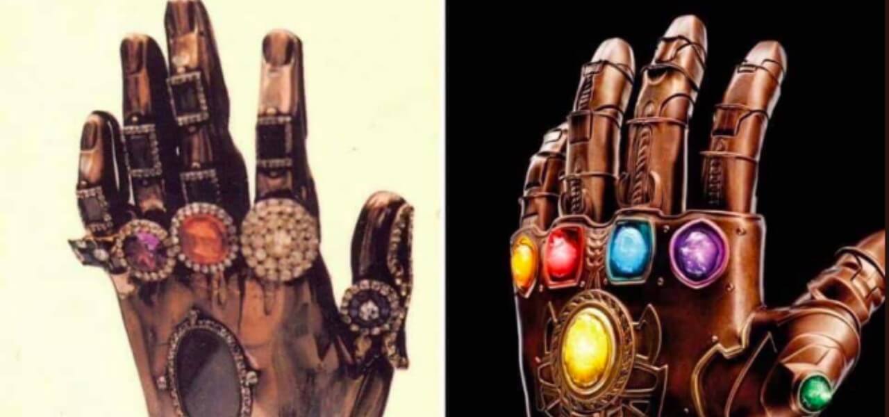 A sinistra la mano di Santa Teresa e a destra il guanto di Thanos