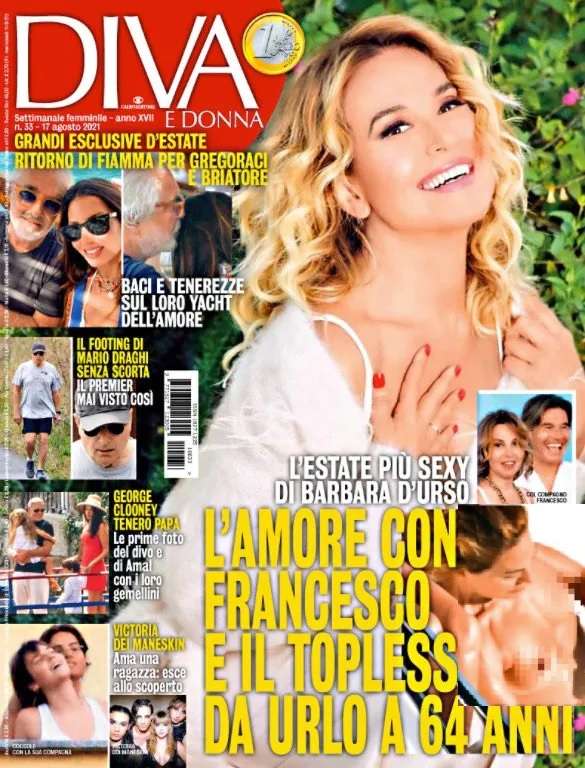 Nella copertina di Diva e Donna, Barbara D’Urso è in primo piano e si parla appunto della sua storia con Francesco Zangrillo. “L’estate più sexy, l’amore con il compagno Francesco Zangrillo”, si legge nel titolo e quel ‘sexy’ è spiegato da un’immagine della conduttrice in topless che si vede più in basso. Al momento non è però arrivata alcuna conferma dai diretti interessati sulla relazione.