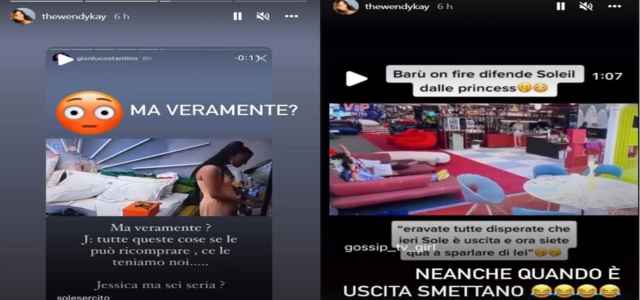 Dopo l’eliminazione, tuttavia, l’atteggiamento della Selassiè sta facendo discutere sia dentro che fuori la casa di Cinecittà. La signora Wendy Kay, tra le storie di Instagram, ha così condiviso due filmati in cui al centro della dinamica c’è proprio Jessica a cui lancia una frecciatina. La mamma di soleil ha così condiviso un filmato in cui Jessica prepara le valigie di soleil tenendo per sè alcune creme e, successivamente, condividendo il video della discussione tra la principessa e Barù, scrive: “Neanche quando è uscita smettono”.