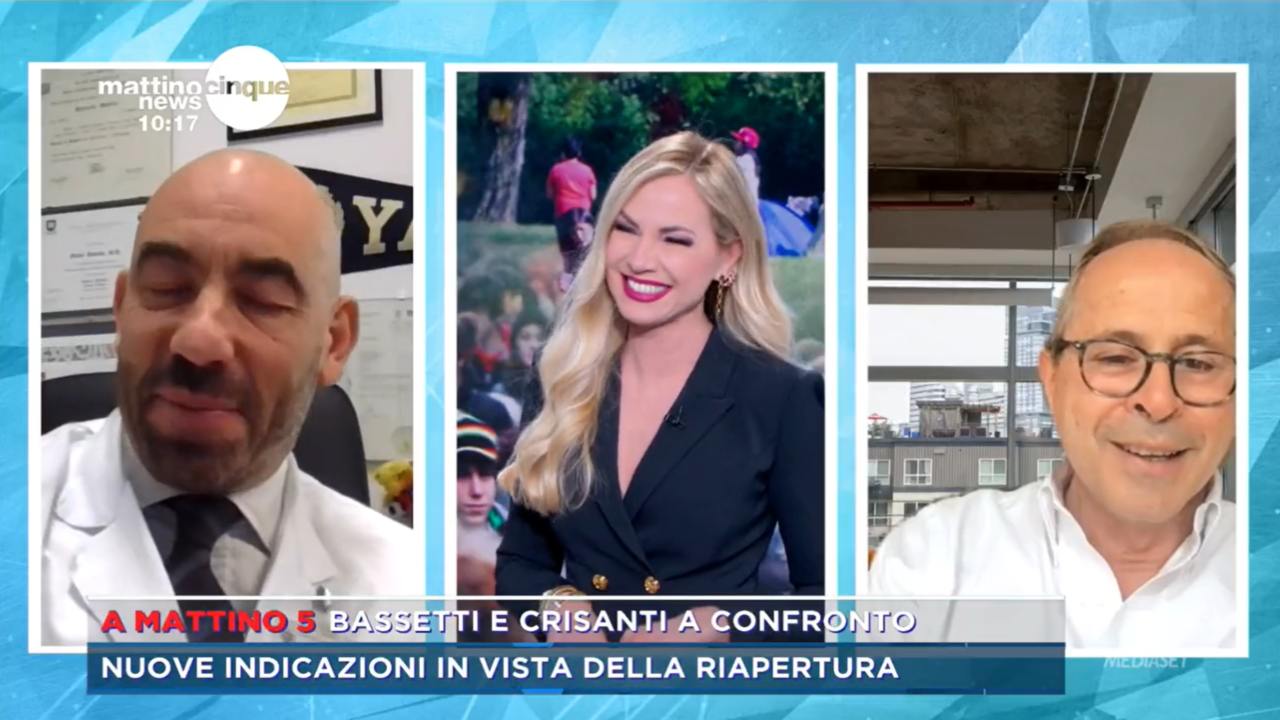 Bassetti e Crisanti a confronto, insieme hanno trovato tanti punti in comune in diretta a #Mattino5 pic.twitter.com/MxFk1xt4mV