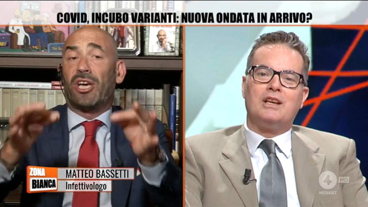 Duro scontro in diretta televisiva ieri sera a Rete 4, in occasione del programma condotto da Giuseppe Brindisi, Zona Bianca. In conclusione di serata si è parlato del covid, e della nuova ondata che ha coinvolto l’Italia in queste ultime due settimane, e si sono palesate due vedute completamente differenti fra il professor Matteo Bassetti, noto primario di malattie infettive dell’ospedale San Martino di Genova, e Klaus Davi, famoso mass mediologo e opinionista di varie trasmissioni tv.