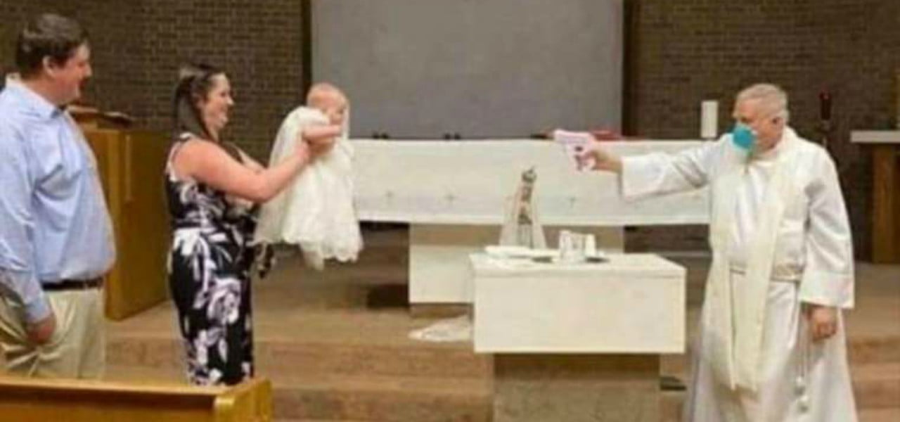 E’ diventata immediatamente virale su tutti i social, facendo registrare come sempre in questi casi commenti pro e contro (più contro che pro…). E’ la foto di un sacerdote con una pistola ad acqua in mano dietro al fonte battesimale che la punta prendendo la mira sembra (diciamo sembra perché infatti non è stato così) verso un neonato tenuto in braccio dalla mamma. Il sacerdote ha anche la mascherina e la foto è stata commentata come “il battesimo al tempo del coronavirus”. E giù valanghe di accuse alla “pazzia” di prete e genitori che potevano aver scioccato il bambino puntandogli una pistola contro. Come si sa la distanza di sicurezza va tenuta anche in chiesa, adesso che hanno finalmente riaperto, e dunque l’immagine ha fatto pensare a un “battesimo a distanza di sicurezza”. A parte che i bambini, fortunatamente, non vengono contagiati dal coronavirus.