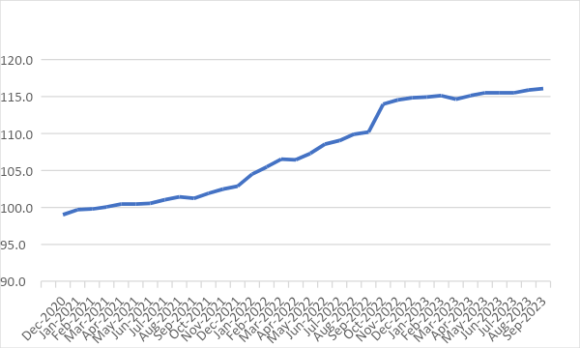 3) A questo punto, se non vogliamo farci trarre in inganno da come misuriamo la crescita dei prezzi non ci resta che guardare direttamente all’andamento del numero indice dei prezzi al consumo il quale ci fornisce la fotografia esatta del sentiero che i prezzi stanno percorrendo.