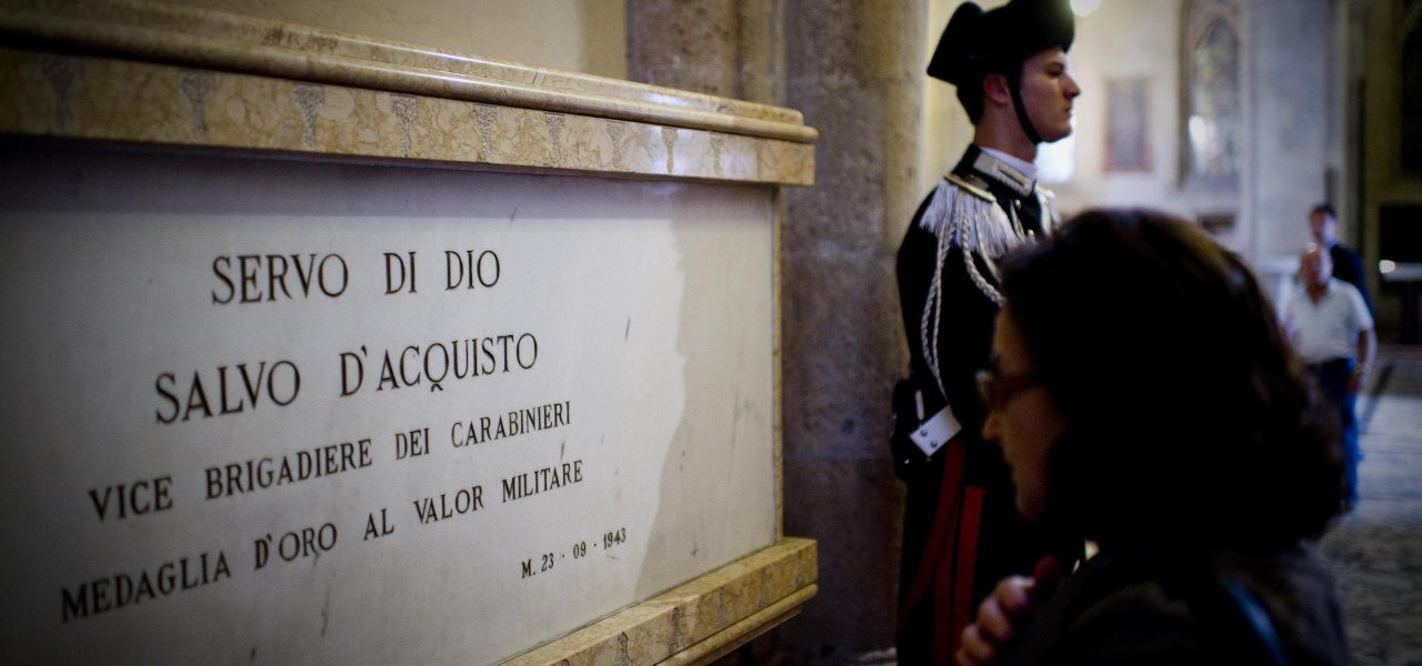 Salvo D’Acquisto si rese protagonista di un episodio che lo ha già reso Servo di Dio e venerabile: quando il 22 settembre ’43 una pattuglia di soldati nazisti entrò nella sede della GDF a Torre di Palidoro, nel tentativo di forzare le casse metalliche esplosero in maniera “fortuita” due bombe sequestrate in precedenza. Con la morte di un tedesco e il ferimento di altri due, si pensò ad un attentato degli italiani. Nel rastrellamento seguente, vennero condannati a fucilazione 22 uomini innocenti di quel paesino: il prossimo Beato Salvo D’Acquisto si offrì al loro posto dichiarandosi colpevole dell’attentato, quando non era affatto vero; morì fucilato dai nazisti ma gli altri ostaggi vennero tutti liberati.