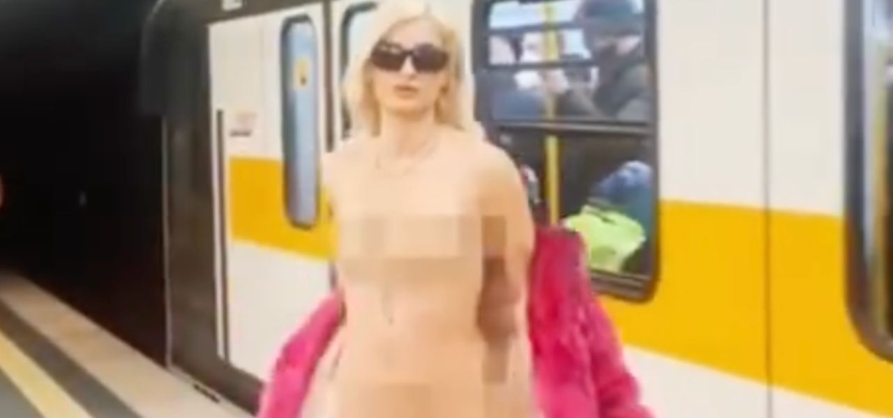Beatrice Quinta sfila nuda a Milano, in metro: via la pelliccia fuxia e la cantante di X Factor resta completamente senza vestiti