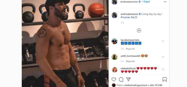 Belen Rodriguez colpisce ancora. La regina indiscussa del gossip di questa infuocata estate torna a far parlare di se, stavolta per un ‘cuoricino’. La showgirl argentina ha infatti attirato nuovamente i riflettori su di se per un like lasciato ad un suo ex. Stefano De Martino? No, Andrea Iannone. Tutto è accaduto su Instagram dopo il noto pilota di MotoGp ha postato proprio nelle ultime ore uno scatto in cui si è mostrato senza maglia, a torso nudo, con muscoli bene in vista. È stato proprio questo scatto ad attirare l’attenzione della Rodriguez che ha allora lasciato un like, un cuoricino, al suo ex fidanzato. Non è il primo like di una ex che Iannone riceve negli ultimi giorni: di recente anche Giulia De Lellis ha ‘piacciato’ un suo post, per la precisione quello in cui ha parlato della mancata gara dopo lo stop forzato per le accuse di doping.