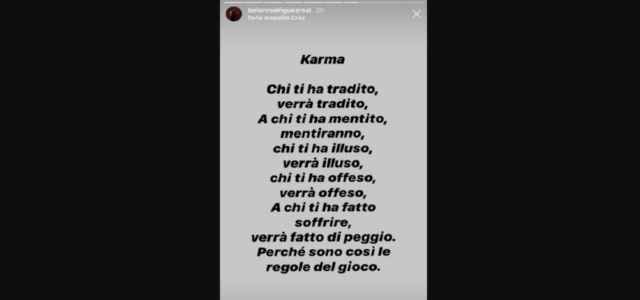 Belen Rodriguez contro Stefano De Martino? La showgirl lancia una frecciatina social in cui si parla di tradimento: "Karma, chi ha tradito...."